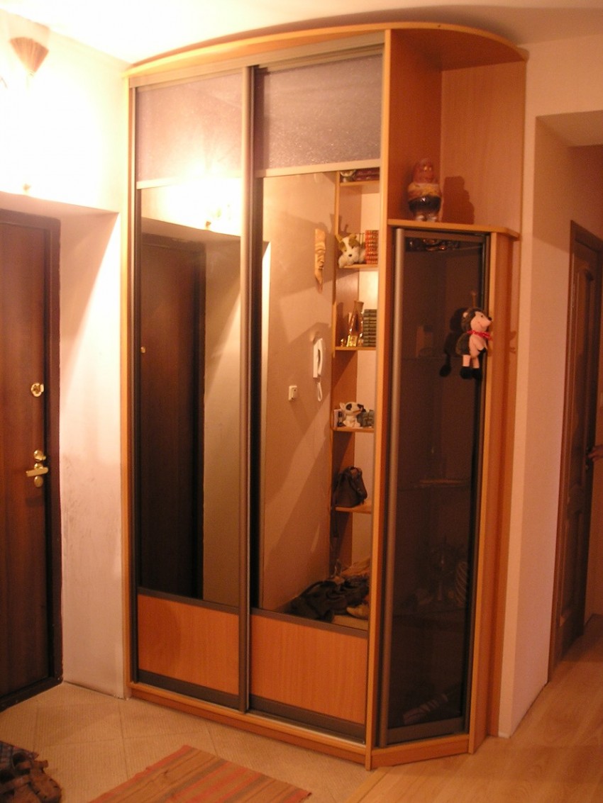 Когда же Вы воспользовались услугами дизайнера, то здесь полет фантазии может быть очень широкий. Специалисты могут предложить применить шкаф – купе дуговой или радиусной формы.