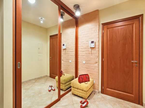 Оптимальный вариант – зеркальные двери либо сочетание зеркальной панели с другими видами материалов. Зеркало позволяет визуально расширить пространство небольшой прихожей.