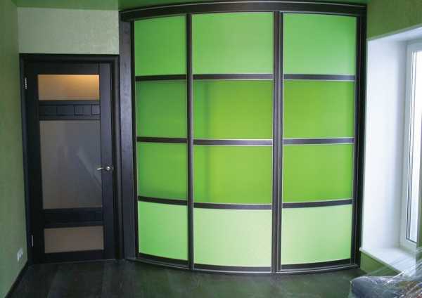 Зеленый полукруглый угловой шкаф в прихожей.