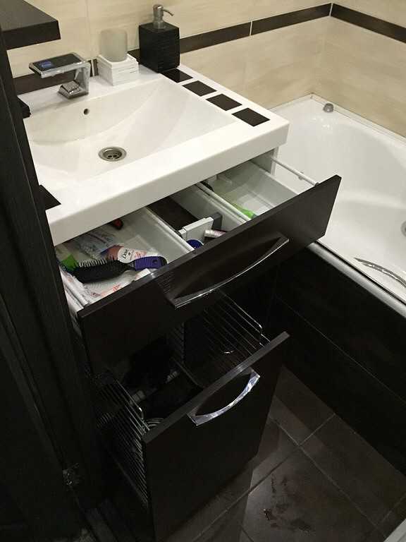 ΠΠΎ Π²ΡΠ΅ΠΌΡ ΡΠ΅ΠΌΠΎΠ½ΡΠ° ΠΈ ΠΎΠ±Π»Π°Π³ΠΎΡΠ°ΠΆΠΈΠ²Π°Π½ΠΈΡ Π²Π°Π½Π½ΠΎΠΉ ΠΊΠΎΠΌΠ½Π°ΡΡ, ΠΏΡΠ°Π²ΠΈΠ»ΡΠ½Π°Ρ ΠΊΠΎΠΌΠΏΠΎΠ½ΠΎΠ²ΠΊΠ° ΠΈ ΠΏΠΎΠ΄Π±ΠΎΡ ΠΈΠ½ΡΠ΅ΡΡΠ΅ΡΠ° ΠΈΠ³ΡΠ°Π΅Ρ Π²Π°ΠΆΠ½ΠΎΠ΅ Π·Π½Π°ΡΠ΅Π½ΠΈΠ΅ ΠΈ ΠΎΡΠ½ΠΈΠΌΠ°Π΅Ρ Π±ΠΎΠ»ΡΡΠΎΠ΅ ΠΊΠΎΠ»ΠΈΡΠ΅ΡΡΠ²ΠΎ Π²ΡΠ΅ΠΌΠ΅Π½ΠΈ. ΠΠ½ΡΠ΅ΡΡΠ΅Ρ Π΄ΠΎΠ»ΠΆΠ΅Π½ Π½Π΅ ΡΠΎΠ»ΡΠΊΠΎ ΡΠΎΠΎΡΠ²Π΅ΡΡΡΠ²ΠΎΠ²Π°ΡΡ ΡΡΠΈΠ»ΠΈΡΡΠΈΠΊΠ΅ Π²Π°Π½Π½ΠΎΠΉ, Π½ΠΎ ΠΈ ΡΠ°ΡΠΈΠΎΠ½Π°Π»ΡΠ½ΠΎ ΡΠ°ΡΡ ΠΎΠ΄ΠΎΠ²Π°ΡΡ ΡΠ²ΠΎΠ±ΠΎΠ΄Π½ΠΎΠ΅ ΠΏΡΠΎΡΡΡΠ°Π½ΡΡΠ²ΠΎ. ΠΠ΄Π½ΠΈΠΌ ΠΈΠ· ΡΠ°ΠΊΠΈΡ ΡΠ»Π΅ΠΌΠ΅Π½ΡΠΎΠ² ΡΠ²Π»ΡΠ΅ΡΡΡ ΡΠΊΠ°ΡΡΠΈΠΊ ΠΏΠΎΠ΄ ΡΠ°ΠΊΠΎΠ²ΠΈΠ½Ρ Π² Π²Π°Π½Π½ΡΡ, ΠΊΠΎΡΠΎΡΡΠΉ Π΄Π°ΡΡ Π²ΠΎΠ·ΠΌΠΎΠΆΠ½ΠΎΡΡΡ ΠΈΡΠΏΠΎΠ»ΡΠ·ΠΎΠ²Π°ΡΡ ΠΏΡΠΎΡΡΡΠ°Π½ΡΡΠ²ΠΎ ΠΏΠΎΠ΄ ΡΠΌΡΠ²Π°Π»ΡΠ½ΠΈΠΊΠΎΠΌ Π΄Π»Ρ Ρ ΡΠ°Π½Π΅Π½ΠΈΡ ΠΏΡΠ΅Π΄ΠΌΠ΅ΡΠΎΠ² ΠΏΠ΅ΡΠ²ΠΎΠΉ Π½Π΅ΠΎΠ±Ρ ΠΎΠ΄ΠΈΠΌΠΎΡΡΠΈ ΠΈ Π±ΡΡΠΎΠ²ΡΡ ΡΠΈΡΡΡΡΠΈΡ ΡΡΠ΅Π΄ΡΡΠ².