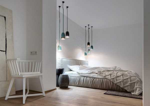 Освещение в белой спальне