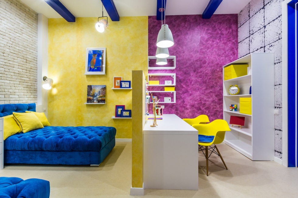 Поп-арт подойдет для детей-подростков с творческими наклонностями, которые желают запомниться миру искусства и не растеряют вдохновение с возрастом. Грамотный выбор дизайна места будет смотреться стильно и солидно долгое время. Главное правило для родителей — не переборщить с красками.