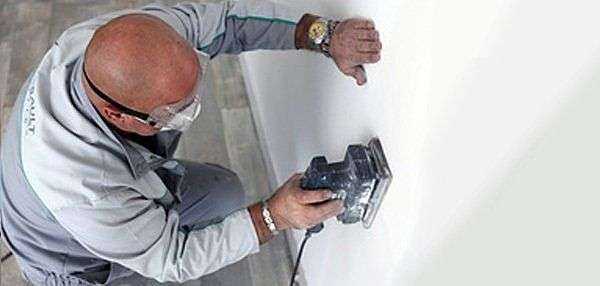 Шлифовка стен после шпаклевки, которая выполняется при помощи специальной машинки, не только занимает меньше времени, но и весь процесс работы можно выполнить в чистоте.