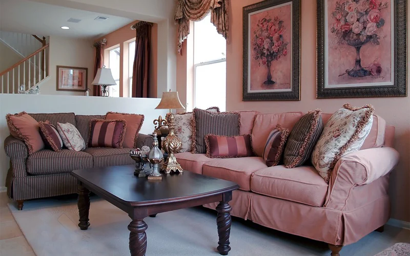 Очень интересным сочетанием будут смотреться коричнево-шоколадный со светло-коралловым. Они очень гармонично переплетаются, оставляя ощущение мягкости. Еще лучше будет если в него добавить белого, бежевого, синего.