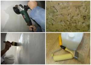 Механический способ. Этот метод самый трудоемкий, осуществляется при помощи шлифовальной машинки или шпателя. После такой обработки краска на поверхности может отойти частично, а оставшиеся островки следует обработать грунтовкой, например, бетон-контактом.