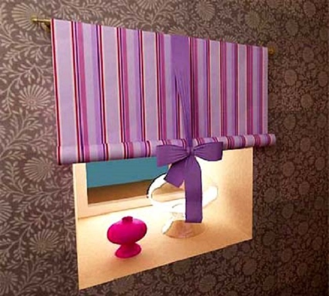 Еще есть пара способов крепления таких штор к окну, при помощи клея или строительного скотча, либо при помощи саморезов. Для самостоятельного создания и монтажа этих штор лучше выбрать первый метод, так как он легче и отлично подходит для крепления штор небольшого веса, например, штору из обоев.