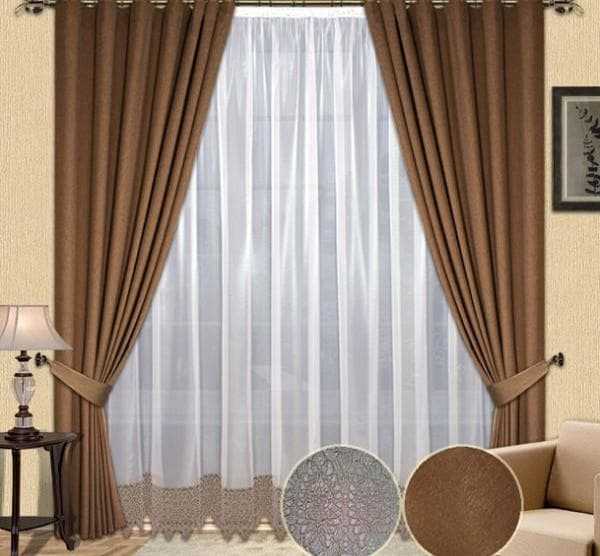 - Тяжелые плотные материи. Чтобы комната сильно не была ими перегружена, можно дополнить интерьер комнаты шторами из вуали. Отличным вариантом станет модная тюль или органза.