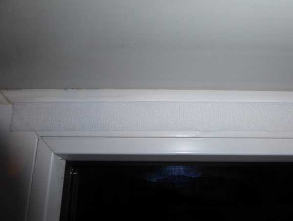 На окно сверху будем клеить липучку с шипами (как на фото). Это очень важно. При стирке шторы не будет затяжек на ткани.