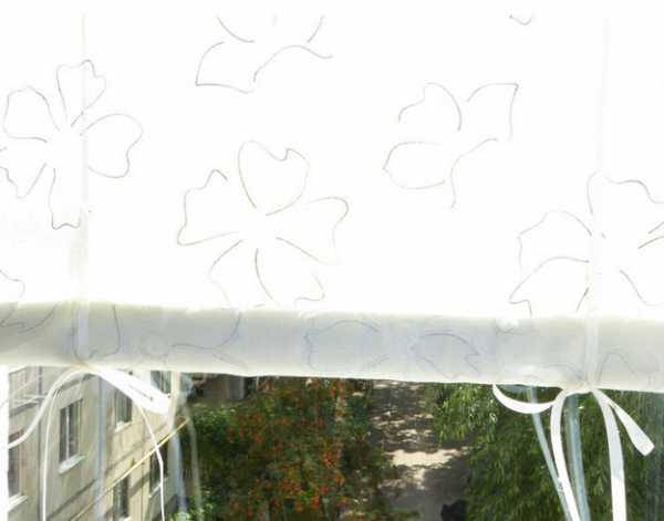 Подворачиваем снизу рулончиком шторку и подвязываем бантиками.