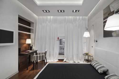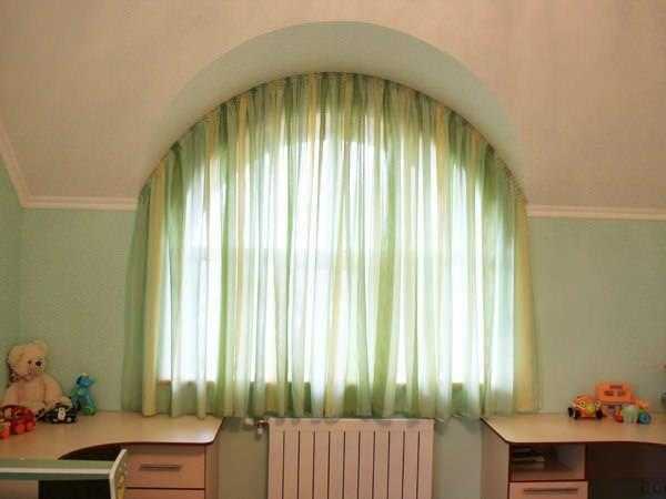 Можно, конечно, и маленькое окошечко украсить тюлем в пол. Выбирайте прозрачную материю, воздушную, с интересным рисунком.