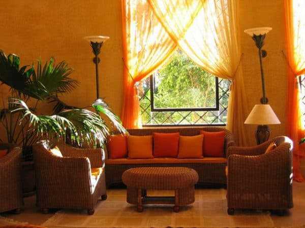 - Лен. Такой тип материи способен выделить «крестьянский» стиль. Любой этно-дизайн не может обойтись без штор, выполненных из льняных или хлопковых тканей. Чтобы немного оттенить, следует использовать нежную занавеску из вуали. Лучшим вариантом при производстве солнцезащитных изделий остается природное хлопковое или льняное полотно. Тут можно посмотреть фото хлопчатобумажной ткани.