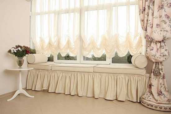 Приобретать подобную продукцию целесообразно, если их установка будет вестись на кухне. Их конструкция предусматривает наличие каскада гирлянд из складок, фиксация которых происходит при помощи лент.