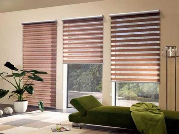 По критериям светопроницаемости оптимальными в гостиной считают шторы типа «день-ночь», регулирующие естественное освещение комнаты.