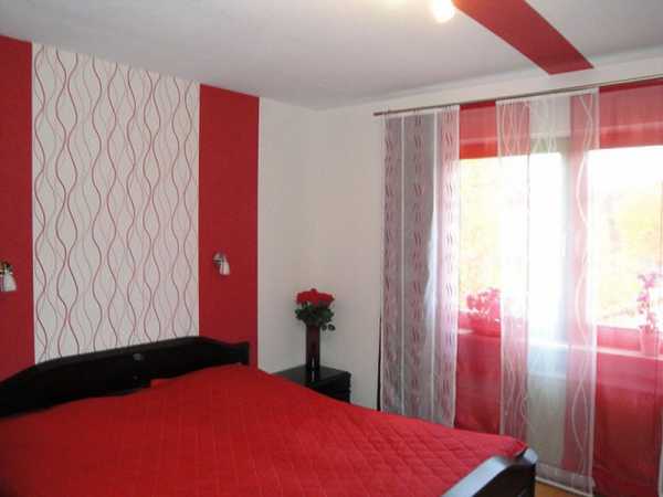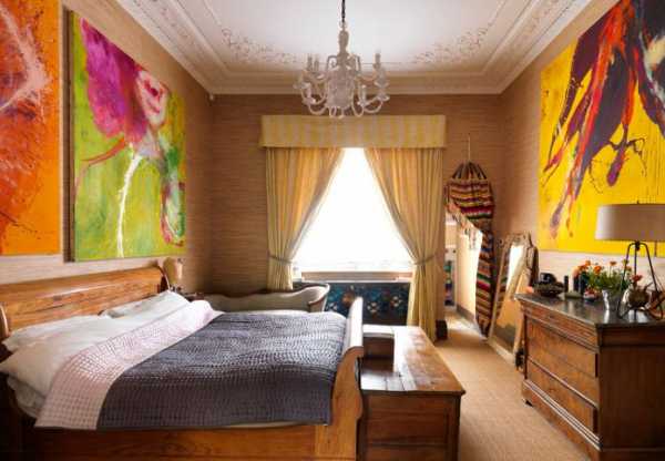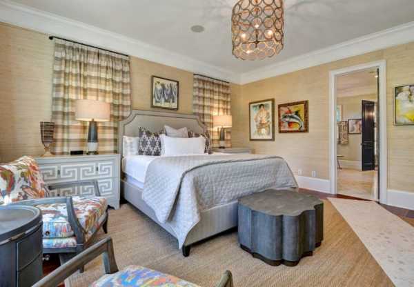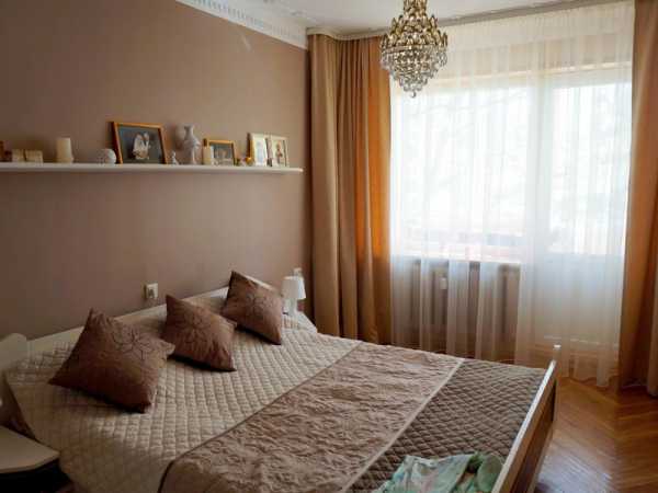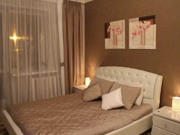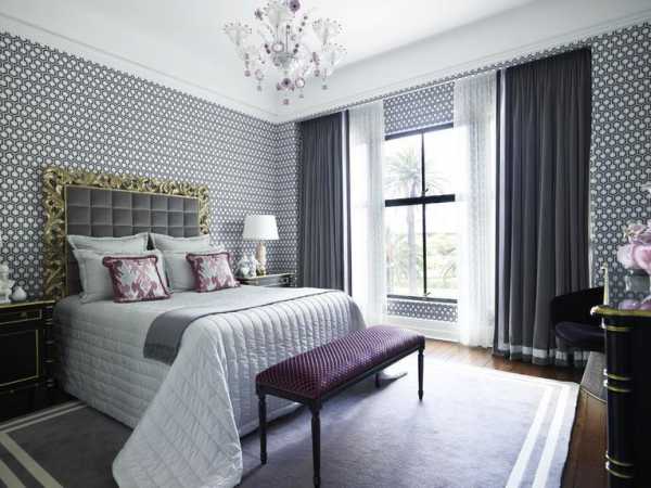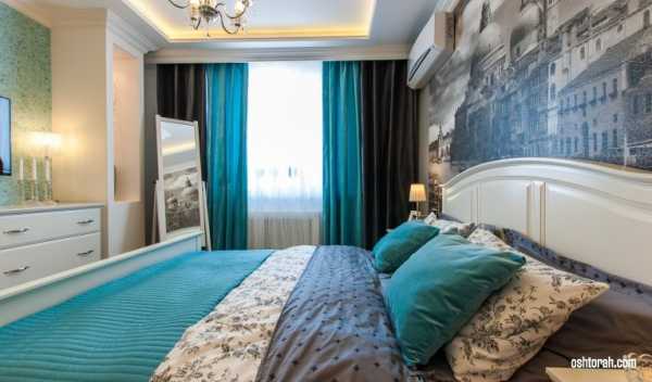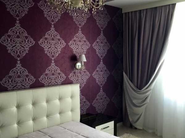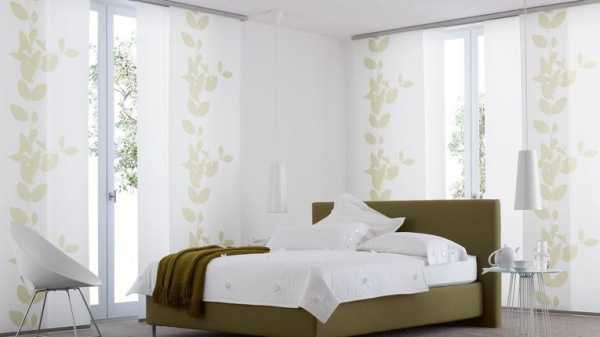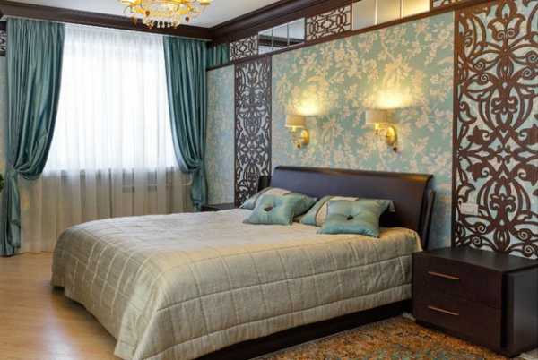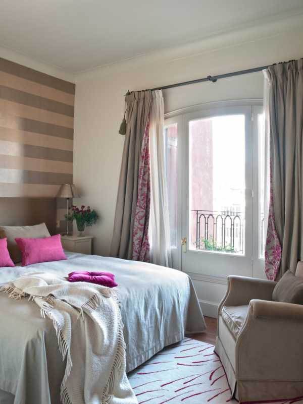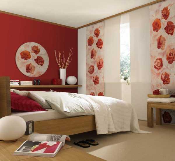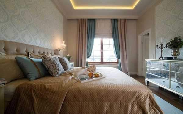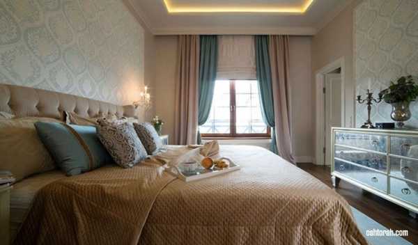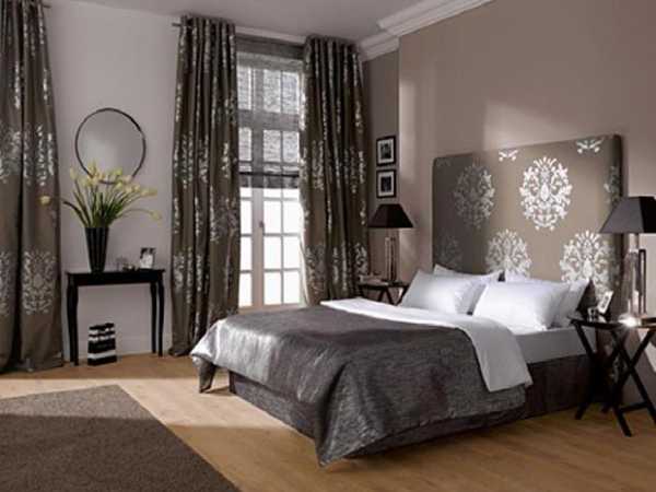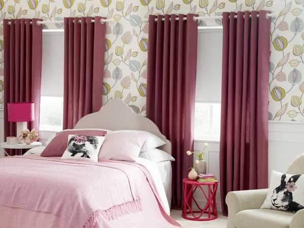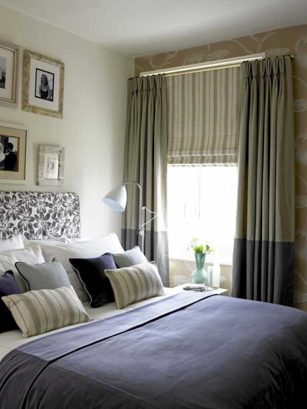 - если стены спальни оклеены обоями с крупным рисунком, лучше откажитесь от цветных штор в пользу однотонных;