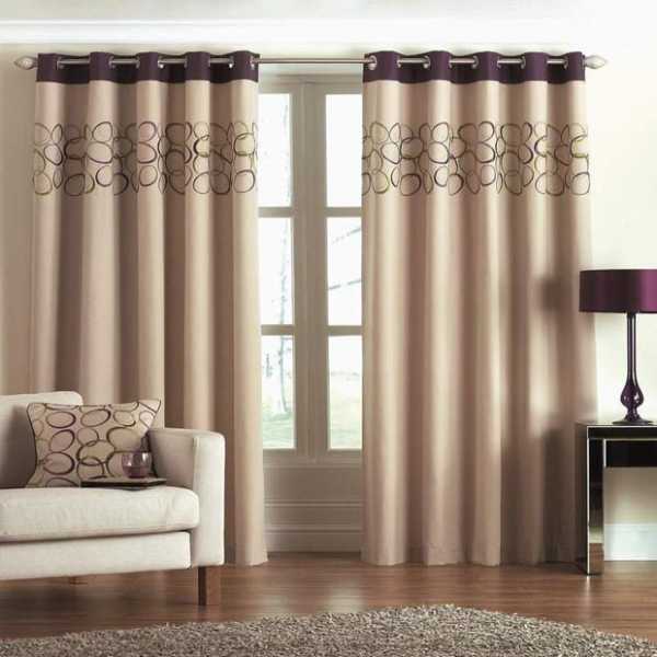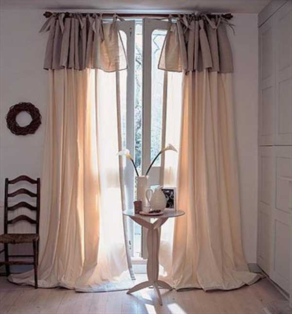 Еще одним вариантом дизайна может быть отделка штор по краю другой тканью. В таком случае создается иллюзия,что занавески двойные, но на самом деле это не так. Это более удобный и экономичный вариант. Вам понадобиться в два раза меньше ткани и кроме того, не нужно будет устанавливать тройной карниз,чтобы повесить два ряда штор и тюль.