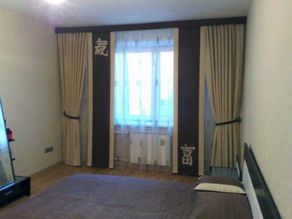 ЯпонскиеС точки зрения экономии можно рассмотреть вариант создания иллюзии двойных штор, когда к основному полотну занавески пришивается полоса другого цвета. Отличить имитацию двойных штор на фото практически невозможно.