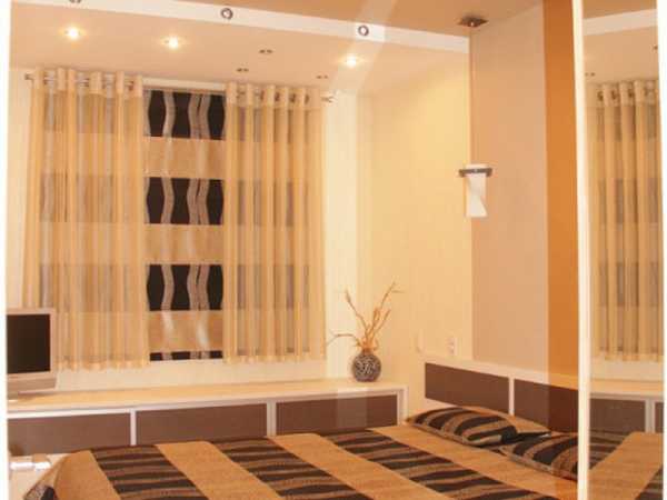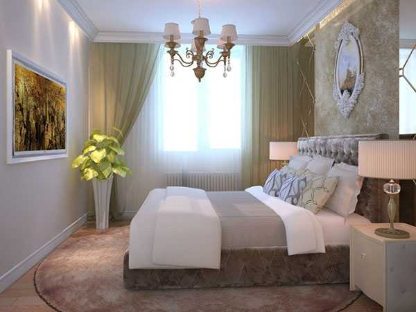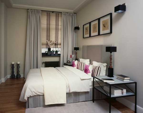 - если ваша спальня имеет небольшие размеры, то откажитесь от тяжелых массивных штор – они будут зрительно делать помещение еще меньшим. Для защиты от солнца лучше использовать в этом случае жалюзи или рулонные шторы.