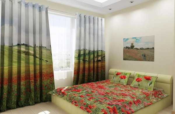 - дизайнеры рекомендуют выбирать шторы таким образом, чтобы они идеально гармонировали с покрывалом или декоративными подушками;