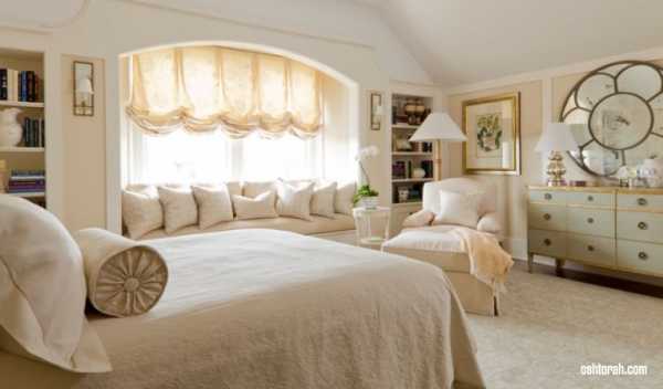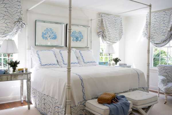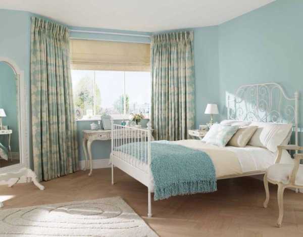 Не выбирайте шторы в спальню схожие по оттенку с цветом стен и потолка. В этом случае вы рискуете получить эффект безликого скучного интерьера.