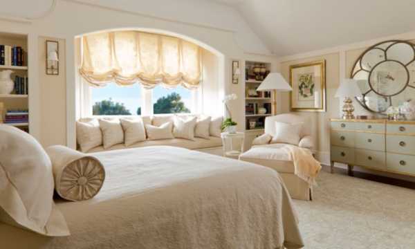 Австрийские шторы ― отличный способ оформить окно в спальне красиво и романтично. Такие занавески нежные и женственные. Они почти лишены прямых углов и строгих линий, поэтому дизайнеры не советуют вывешивать их в холостяцкой спальне.