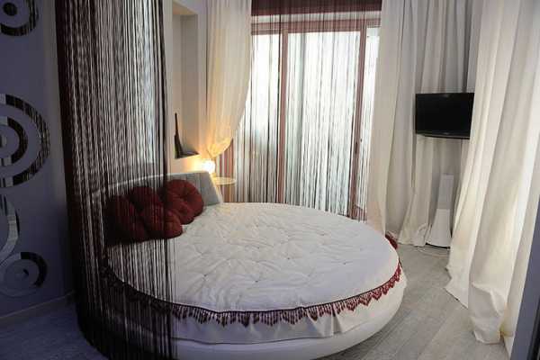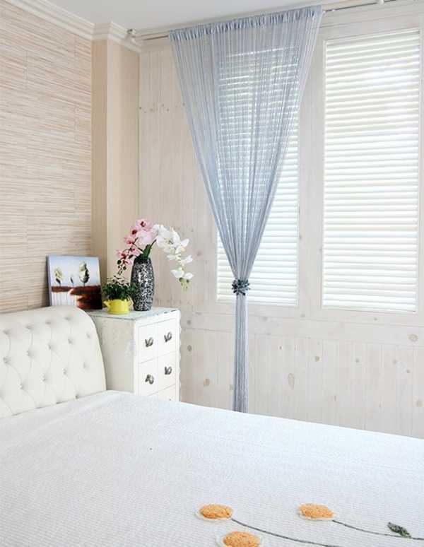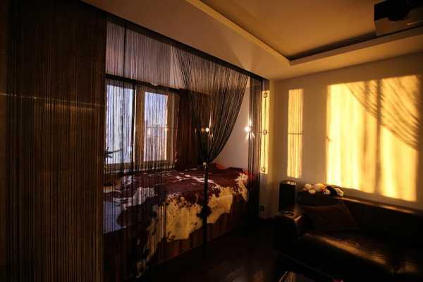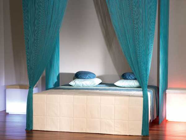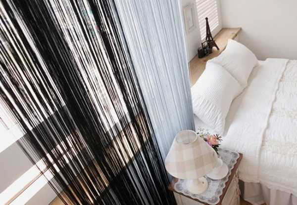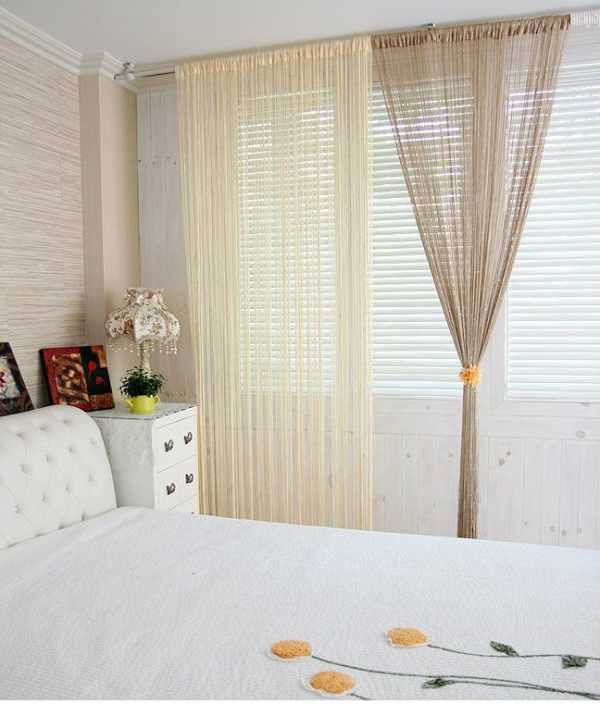 Еще одной инновационной идеей стали шторы-нити, которые отлично смотрятся в спальне. Эти оригинальные занавески пришли к нам с Востока и приобрели большую популярность.
