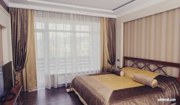 - удлиненные — шторы, длина которых на 10-15 сантиметров превышает высоту потолка вашей спальни, способны придать особую элегантность комнате. Они делают визуально выше потолки, и смягчают угловатые формы оконных рам;