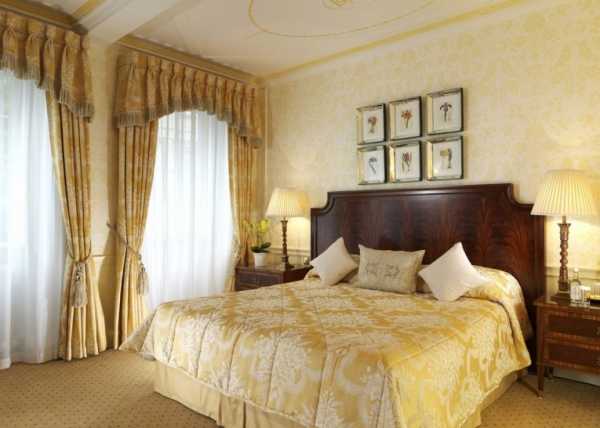 По традиции, если заглянуть в историю, задрапированные ламбрекены в спальню делали из дорогих тканей — дамаста, парчи, бархата.
