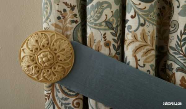 На фото нарядный резной держатель в сочетании с простым хлопчатобумажными шторами привлекает к себе внимание.