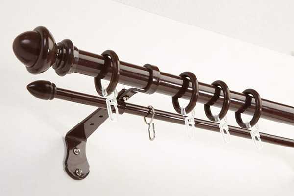 - палочные — схожи со струнными конструкциями, но способны выдерживать более тяжелые шторы. Струна из проволоки заменена в них на тонкую планку из металла или дерева;