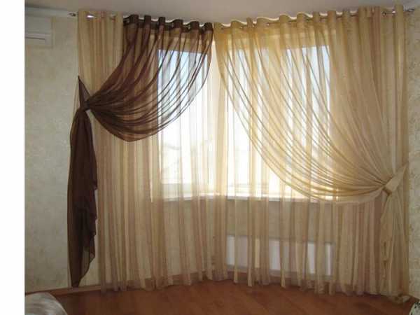 Такие портьеры удачно гармонируют с драпировками и кистями. Кроме того они визуально смягчают резкие линии оконной рамы.
