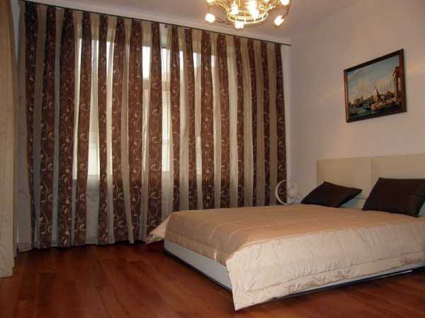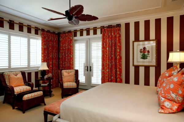 - от того, какой стиль использовался при оформлении интерьера комнаты, подбираются шторы с мелким цветочным орнаментом, вертикальными или горизонтальными полосами, нейтральным абстрактным рисунком. Примеры таких дизайнерских решений можно посмотреть на фото.