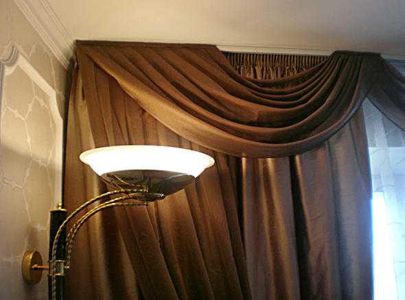 Такой дизайн занавесок выглядит очень нарядно и стильно. К тому же он подходит не только для классических интерьеров, но и для современных.