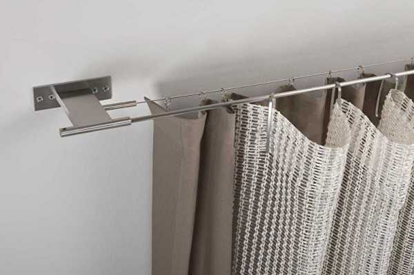 Это штанга, на которую впоследствии вешают шторы, тюль или занавески. Наиболее распространённый вид настенных карнизов для штор — двойная труба, однако бывают также модели с 3−4 трубами. По стилю и размеру круглые настенные карнизы для штор бывают самыми разными. Так, к примеру, классический вариант придаёт окну изюминку и легко сочетается с любыми шторами.