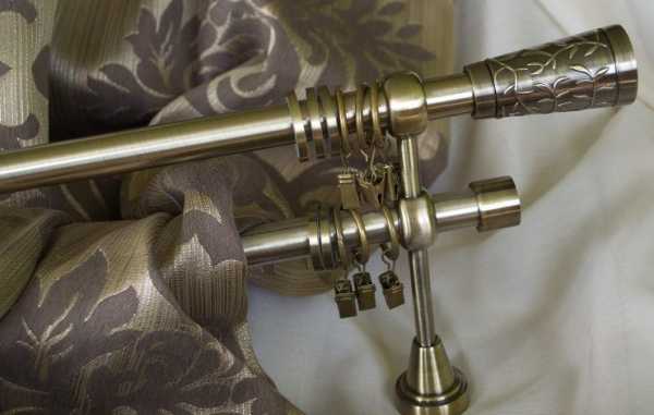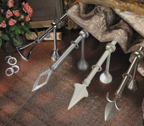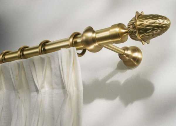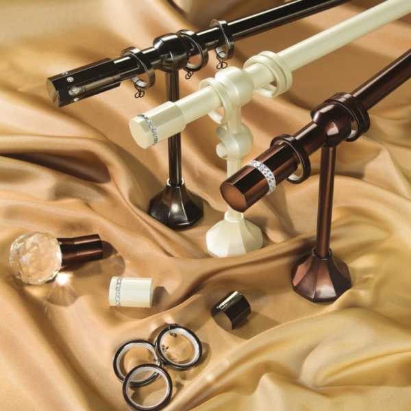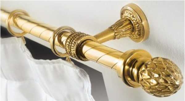 В состав такого элемента мебели входит штанга, на которую непосредственно навешивают занавеси и наконечники разной формы. Наиболее шикарными и богатыми считаются кованые детали, украшенные самыми интересными аксессуарами и наконечниками. Самый популярный бюджетный вариант — карниз из алюминия.