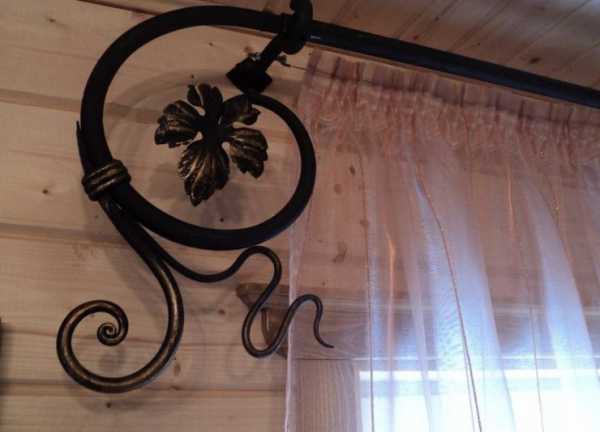 Оригинальный выбор тех, кто решил индивидуально подойти к оформлению окон. Такой вид изделия очень сложно найти в специализирующихся бутиках. Чаще всего его изготавливают под заказ, учитывая все особенности окон и пожелания заказчика. Креативный и слегка громоздкий кованый карниз впишется в атмосферу стилей лофт или классика.