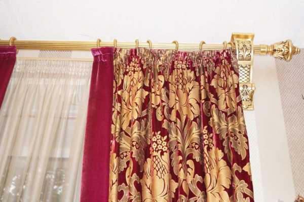 - ткань из которой изготовлена штора во многом влияет на выбор карниза, то есть, тяжёлый плотный материал удержит прочный массивный карниз.