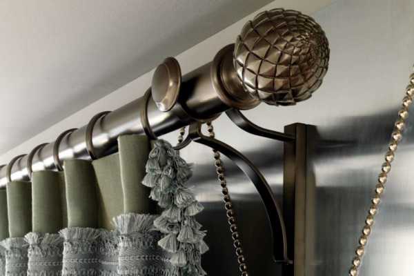 Фурнитура и форма карниза также должна быть лаконичной, а не вычурной. Использование дополнительных декоративных элементов будет актуально только для таких необычных дизайнов интерьера, как этника или барокко. Более современные модерн, хай-тек или прованс не приемлют инкрустации и других деталей.