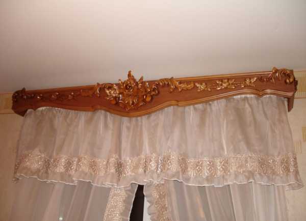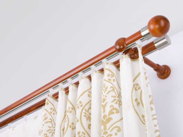 Они появились уже давно, однако не теряют своей популярности. Часто деревянные карнизы для штор оснащаются металлическим стержнем, что увеличивает их вес.