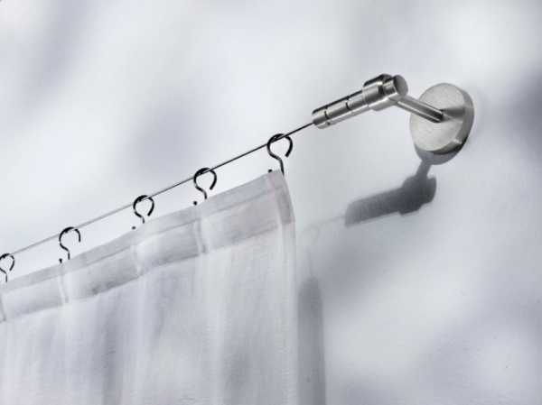 Струнные карнизы представляют собой конструкции, где несущими элементами являются системы прочных тросов (струн). Они не отличаются особой прочностью и, в основном, этот вариант используется для легких занавесок, располагаемых в ванных комнатах или на балконах.