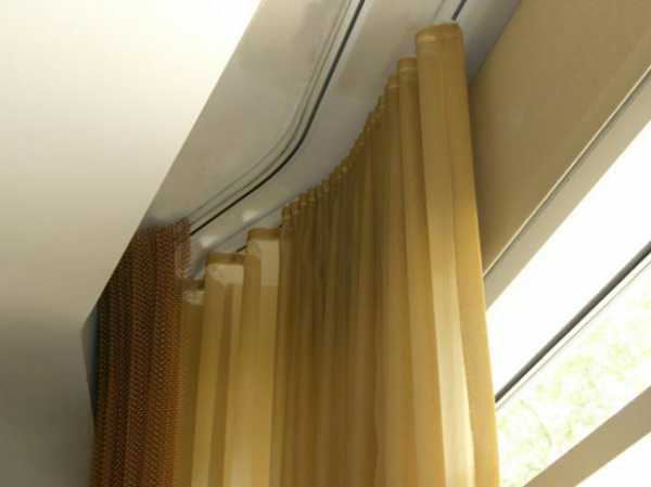 Никто не сможет увидеть такое крепление, поскольку видна будет только портьера. Вы можете посмотреть на фото карнизы для штор, которые спрятаны под натяжным потолком: