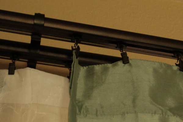 Двухрядные настенные карнизы для штор монтируются в спальнях, детских, зале. Защиту от солнечного света, приватность обеспечивают плотные портьеры. Легкий тюль обеспечивает комфортную обстановку.