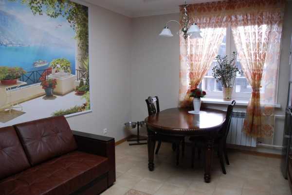 В первом случае их нужно «подружить» с интерьером, например, постелить на скатерть того же цвета или подобрать шторы в цвет дверок кухонных шкафчиков. Но особенно эффектно на кухне выглядят рулонные шторы с фотопечатью — хит текущего и будущего сезонов.