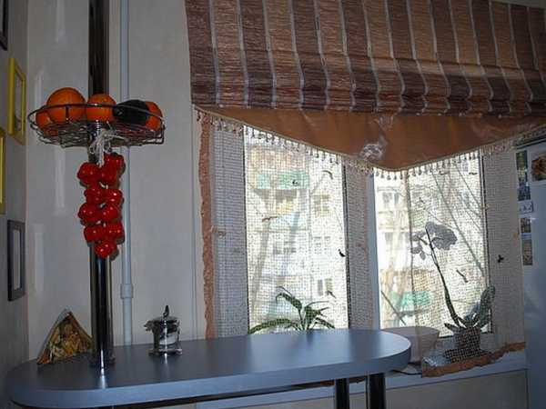 Они могут быть выполнены из ткани, бамбуковой соломки или ПВХ. На кухне лучше использовать два первых варианта. При этом бамбуковые шторы лучше всего подходят под эко- и этно-стили, а тканевые можно вписать в любой интерьер.