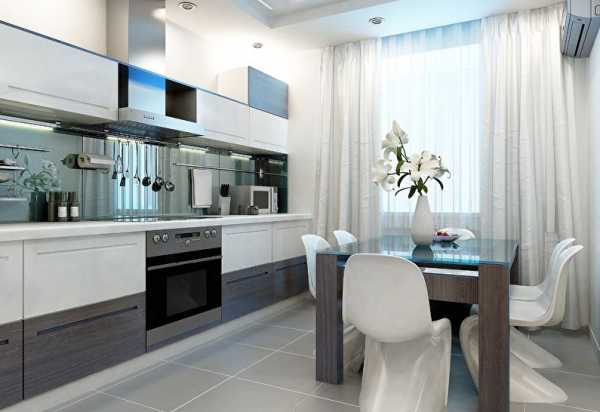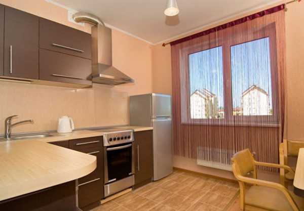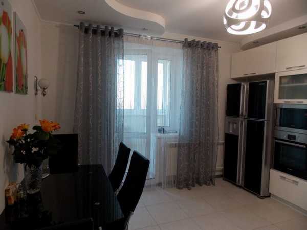 - 3 Длина занавесок зависит от размеров кухни. В небольшом помещении для экономии пространства используют короткие шторы. Шторы в пол лучше использовать в просторной кухне, объединенной со столовой.