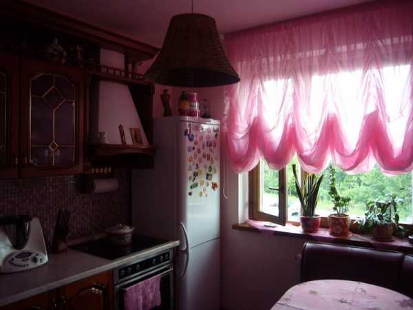 Кухонные интерьеры этого сезона тяготеют к натуральности, легкости, воздушности и обилию света. Поэтому и австрийские занавески из плотной ткани не приветствуются. Для них выбирают ткани, на которых легче формировать плавные пышные складки: хлопчатобумажный тюль, тафту, неплотный шелк, лен.