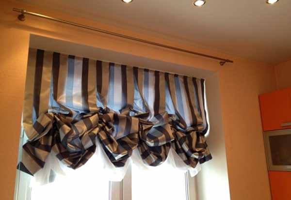 Так и регулируется ее высота. Для фиксации используются две ленты (связки). Выглядит довольно необычно и современно. Крепится такая штора как в оконный проем, так и над окном на карнизе.