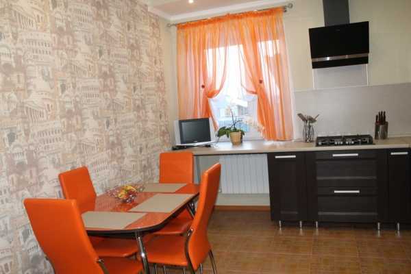 На каких кухнях будут хорошо смотреться оранжевые шторы: