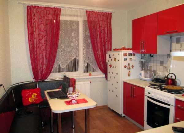 Красные шторы в сочетании с черным смотрятся красиво, но такой дизайн не каждого устроит из-за доли некоторой агрессивности. В кухне с белой мебелью они станут показателем хорошего вкуса. Они хорошо впишутся в уютный прованс (красные шторы в белый горошек) и в классический модерн. В хай-теке они станут именно недостающим для гармонии цветовым пятном.