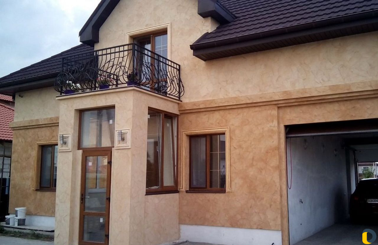 - Небольшой вес облицовочного слоя. В отличие от искусственного камня или клинкерной плитки, штукатурка практически не имеет веса, поэтому нет нагрузки на фундамент.