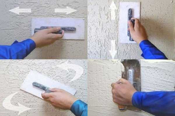 Описанный выше метод считается стандартным. Но, как вам известно, короед знаменит своими разнообразными и фактурными текстурами. Все это достигается всего лишь различными методами нанесения штукатурки. Перечислим основные из них: